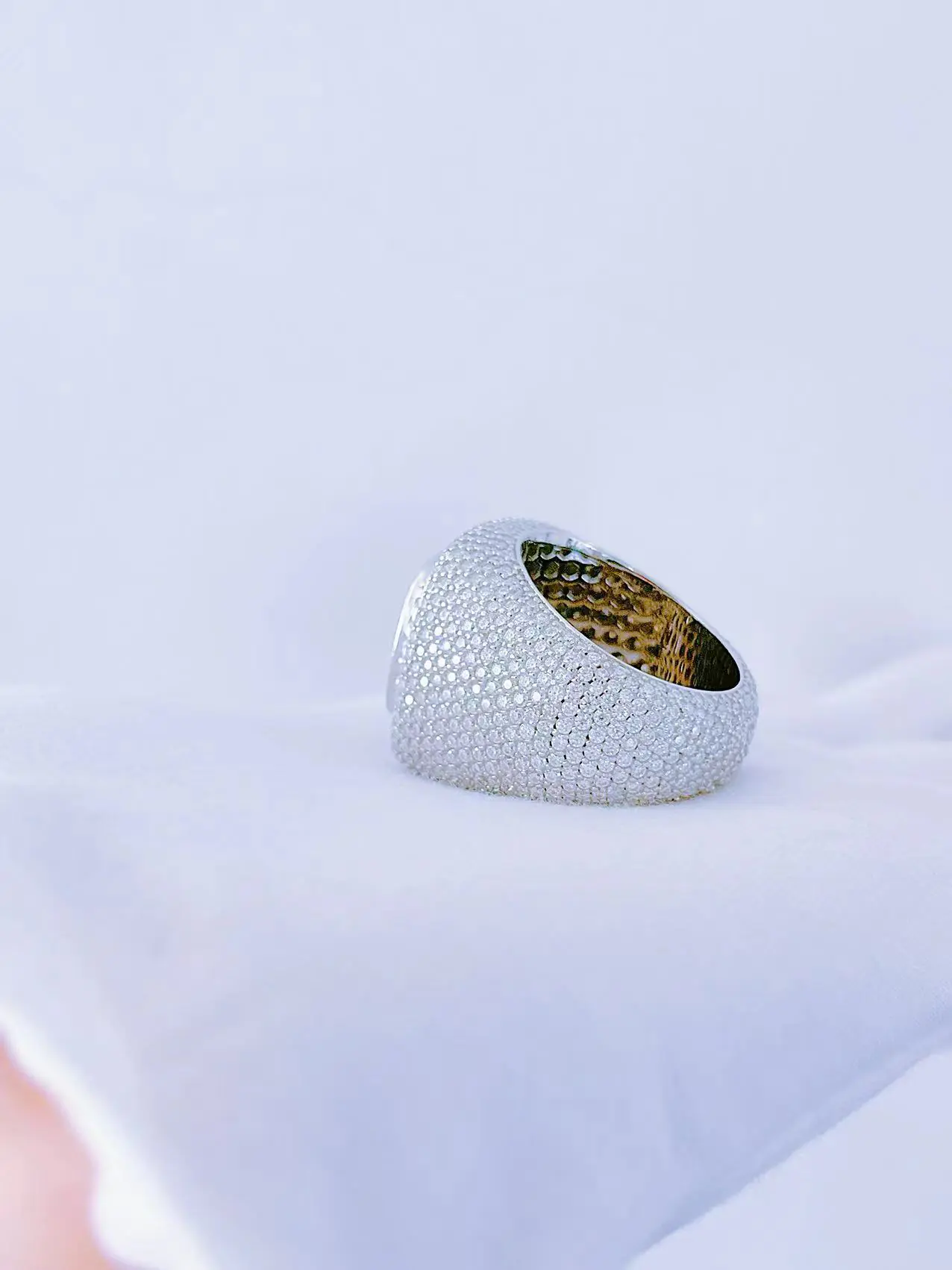 Whether worn alone or paired with moissanite chains and bracelets, this ring completes your iced-out look effortlessly.