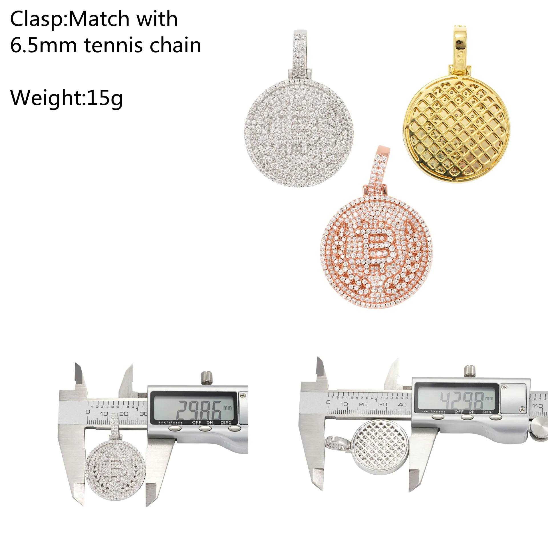 The round Bitcoin symbol pendant captures attention with its high brilliance, precise symmetry, and hip-hop-inspired design.