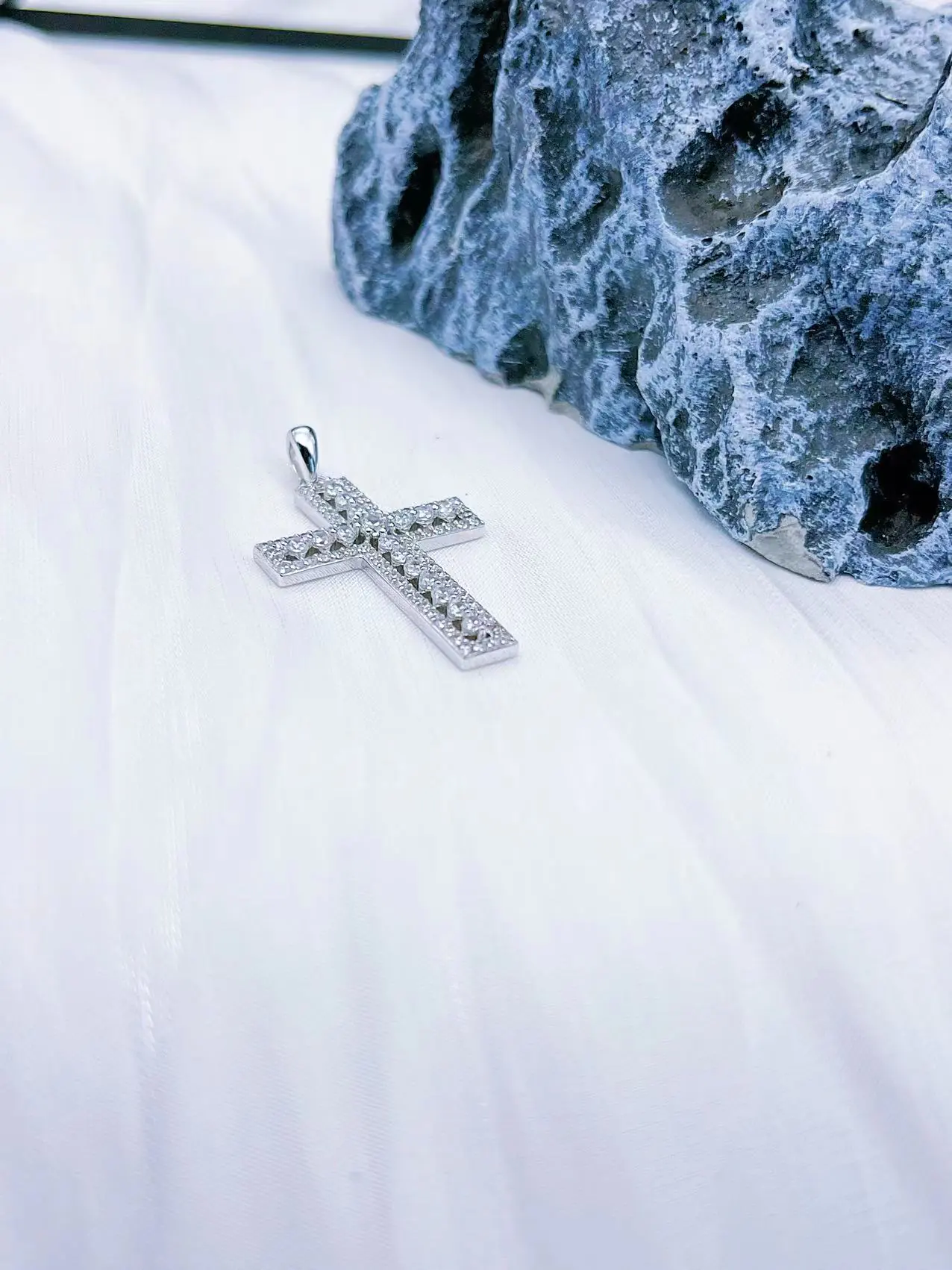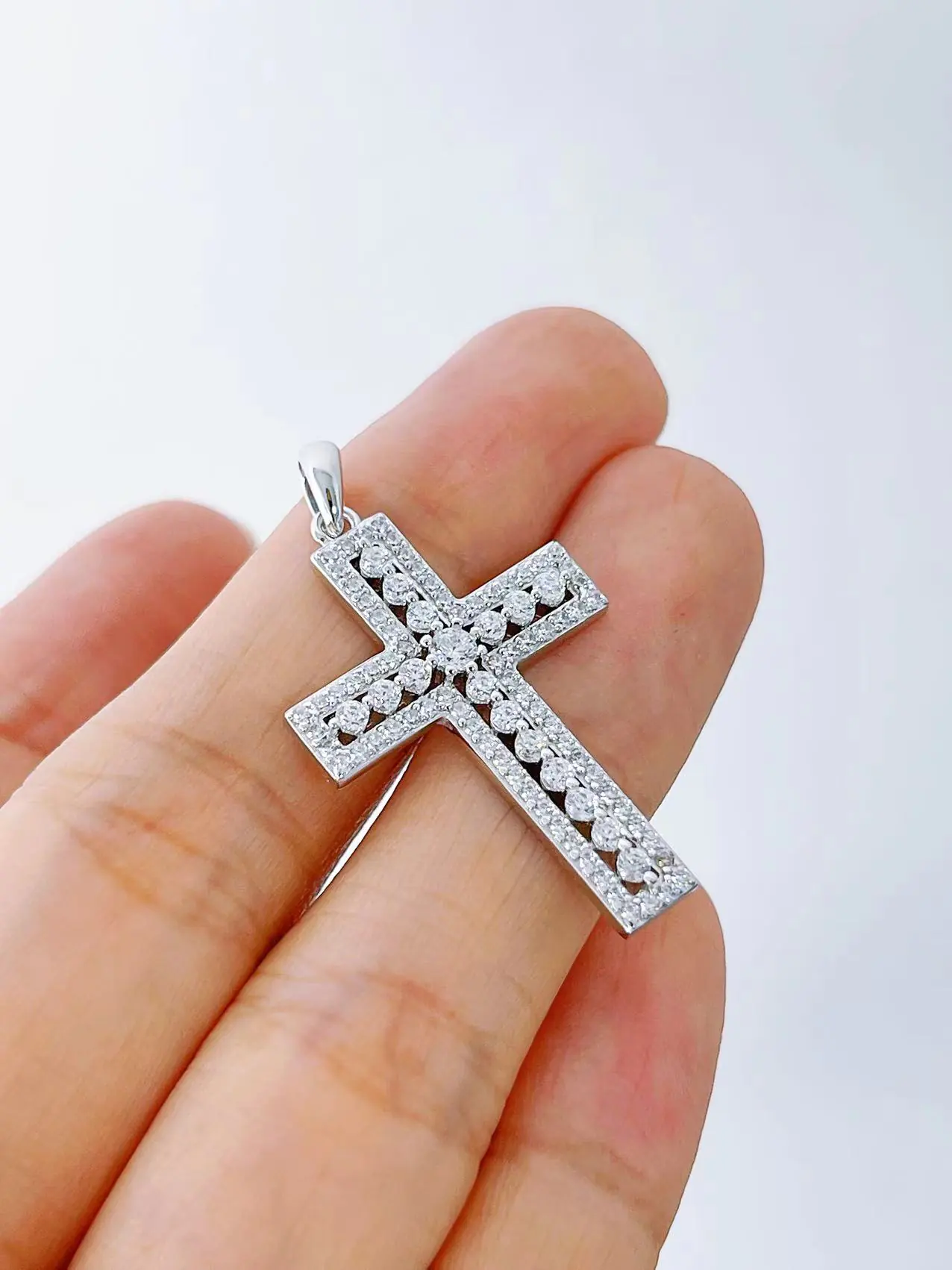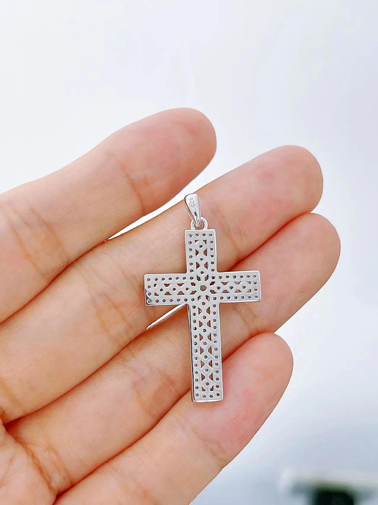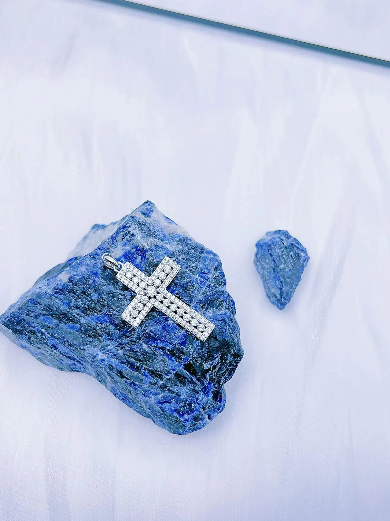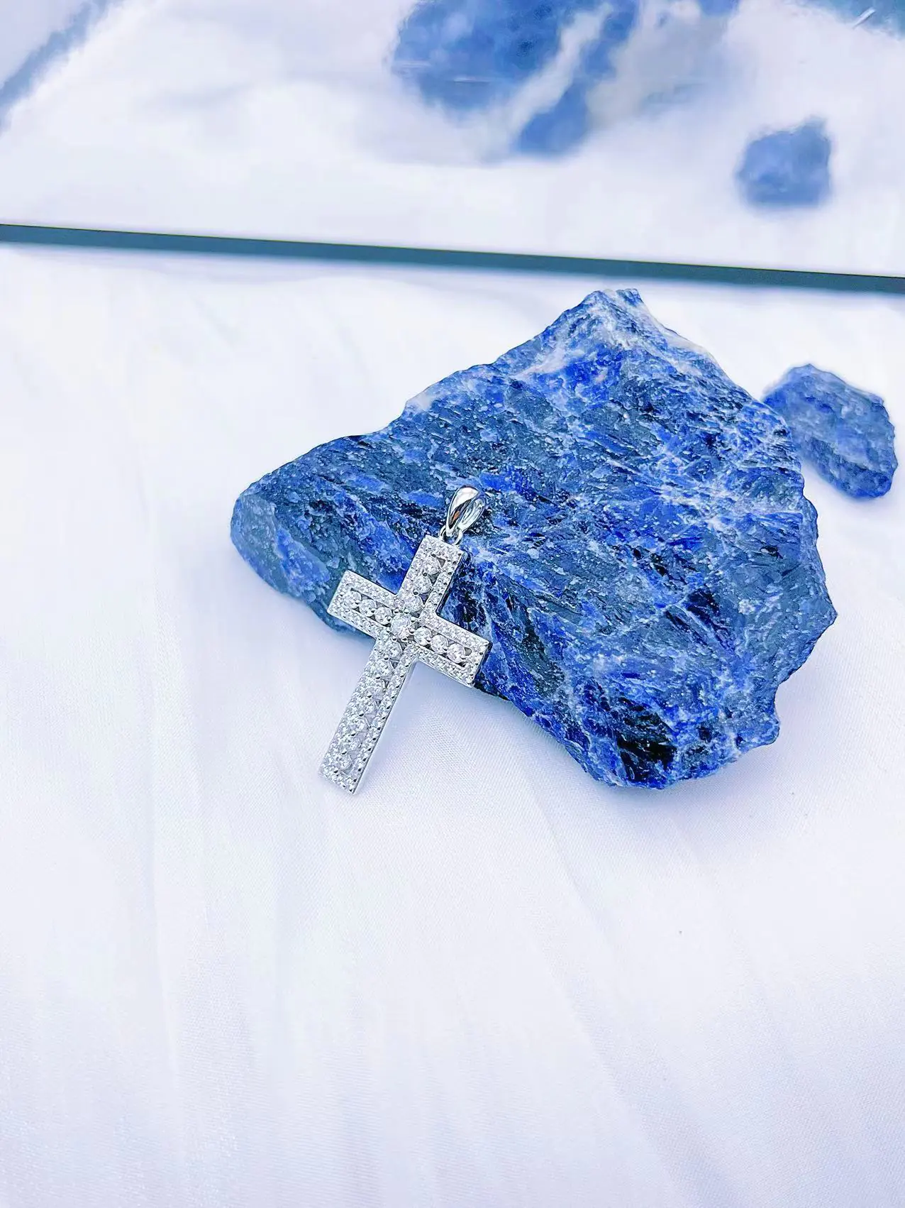 This elegant 925 silver moissanite cross pendant combines modern craftsmanship with timeless faith-inspired design. Every cross is meticulously polished, and the seamless joints ensure a smooth, durable finish. The back of the pendant is carefully ground and reinforced for a premium feel, reflecting the same level of precision you’d expect from fine diamond jewelry.