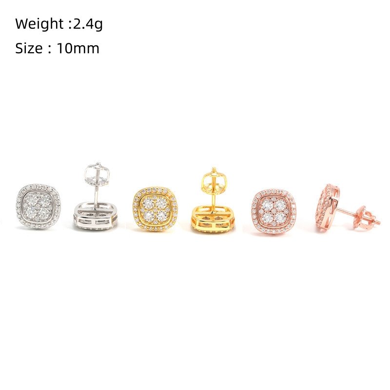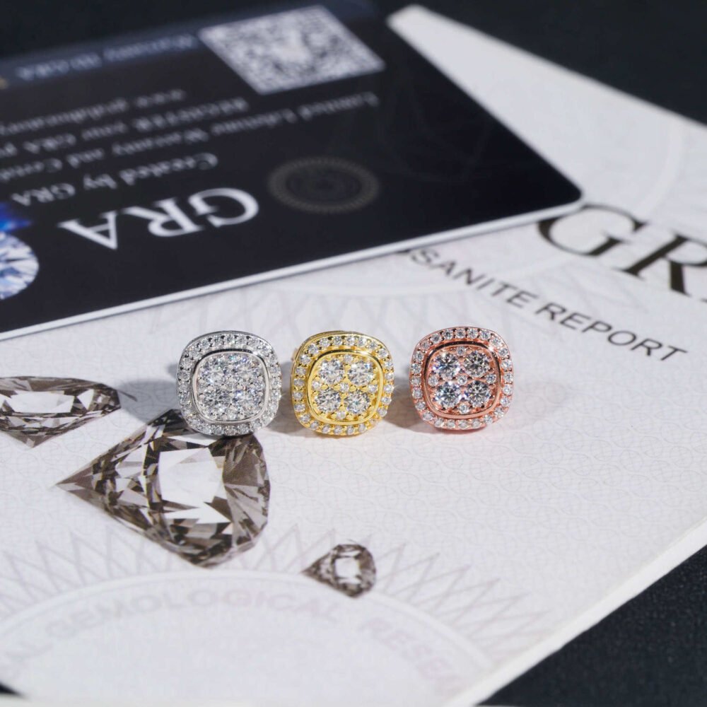 The front features a square cluster layout of VVS moissanite stones, hand-set to create a flawless, full-sparkle surface similar to high-end diamond cluster earrings. The cluster design gives more presence and shine than a single-stone stud while keeping the look neat and refined. The stones reflect beautifully from every angle, making these moissanite stud earrings perfect for daily wear or special occasions.