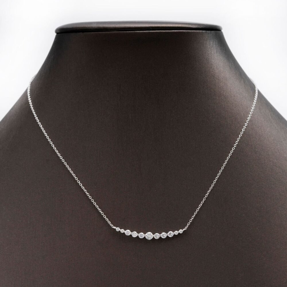 Thank you for reading this post, don't forget to subscribe!Every stone is handset, giving the necklace a smooth layout and a refined sparkle similar to a dainty moissanite necklace but with a more structured presence. The O-link chain on both sides keeps it comfortable and prevents twisting, allowing the necklace to sit flat whether you wear it alone or layer it with other silver moissanite jewelry.