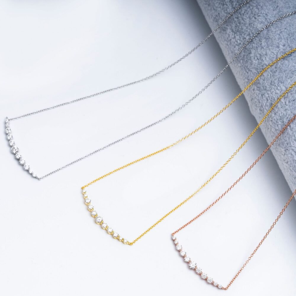 With a total length of 50cm, the Moissanite Diamond Partial Graduated Necklace sits beautifully along the collarbone and pairs well with everyday looks or evening outfits. If you’re searching for an elegant moissanite pendant vibe without a heavy design, this graduated style gives you a balanced, sophisticated shine that fits effortlessly into your daily rotation.