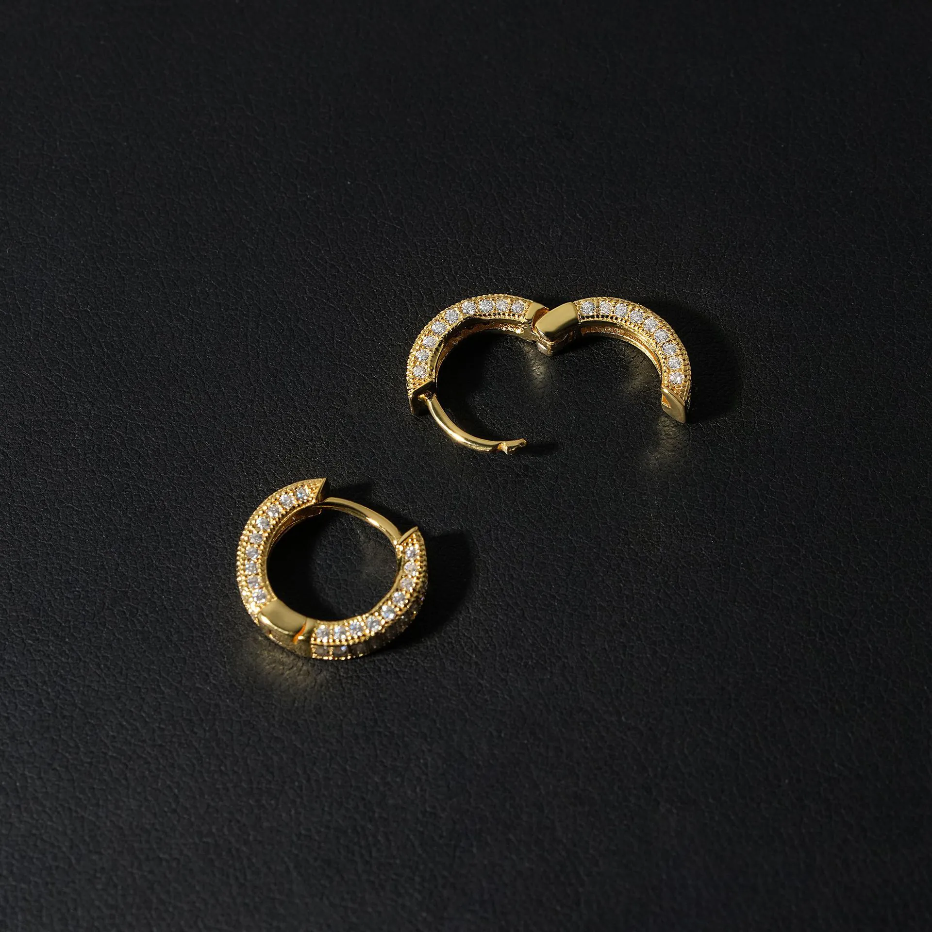 These Gold Moissanite Hoop Earrings are crafted from 925 sterling silver, plated in 18K gold, and hand-set with GRA-certified VVS moissanite for unmatched sparkle.