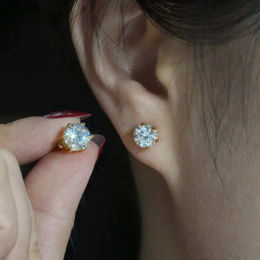 Lightweight, comfortable, and endlessly versatile, these moissanite stud earrings are a must-have addition to any jewelry collection.