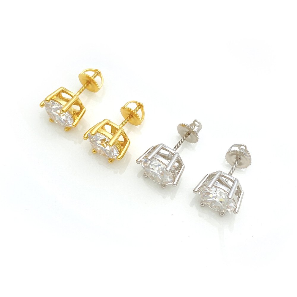 Plated in 14K white gold or yellow gold, the earrings stay bright and durable for everyday wear. With a full size range—from 4.0mm (0.3ct) up to 10.0mm (4ct)—you can choose the perfect size for subtle daily sparkle or a bold statement look. Whether you’re styling them for work, layering them with other pieces, or gifting them to someone special, these six-prong moissanite studs offer a clean and elegant shine that never goes out of style.